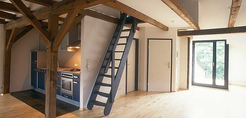 Die historische, denkmalgeschützte Speiseanstalt befand sich seit Ende des 2. Wetkrieges in privater Hand und ist über die Jahre hinweg nicht gepflegt oder saniert worden. Dies wurde dann von unserem Büro im Jahr 2001 übernommen. Entstanden ist dabei eine Mischnutzung aus Kreativbüros und modernen Wohnungen.